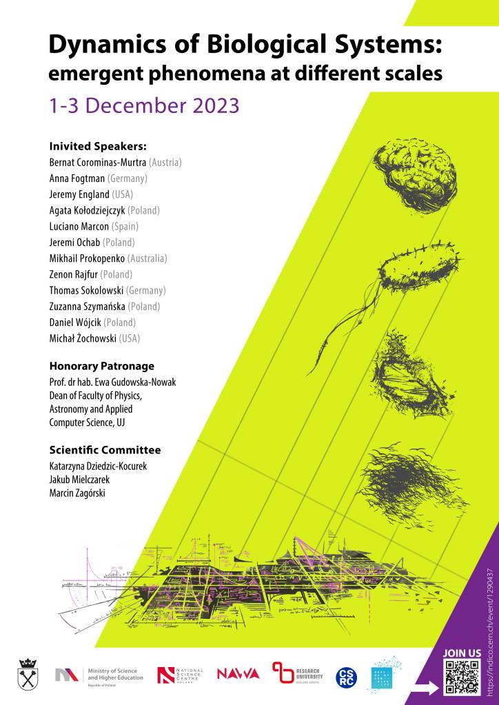 We organize conference ‘Dynamics of biological systems: emergent phenomena at different scales’ on 1-3 December. We have excellent line-up of speakers and expect many great contributions from participants! The conference is stationary in Krakow with possibility to attend on-line. Register now at: https://indico.cern.ch/event/1290437/